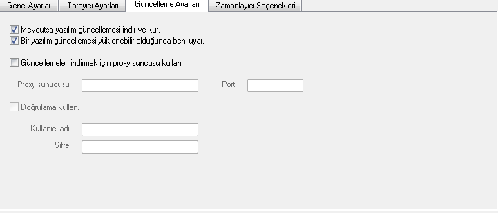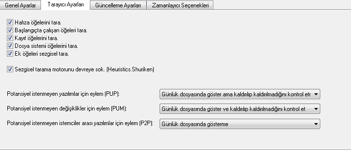 Taraycı Ayarlarında ise Hafıza, kayıt, sistem öğeleri, ek öğeleri ve bağlangıçta çalışan öğelerin taranıp taranmayacağı ile ilgili ayarları yapabilirsiniz.