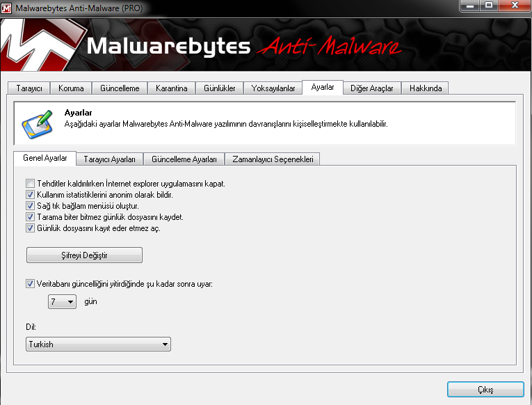 Malwarebytes Anti-Malware Ayarlar