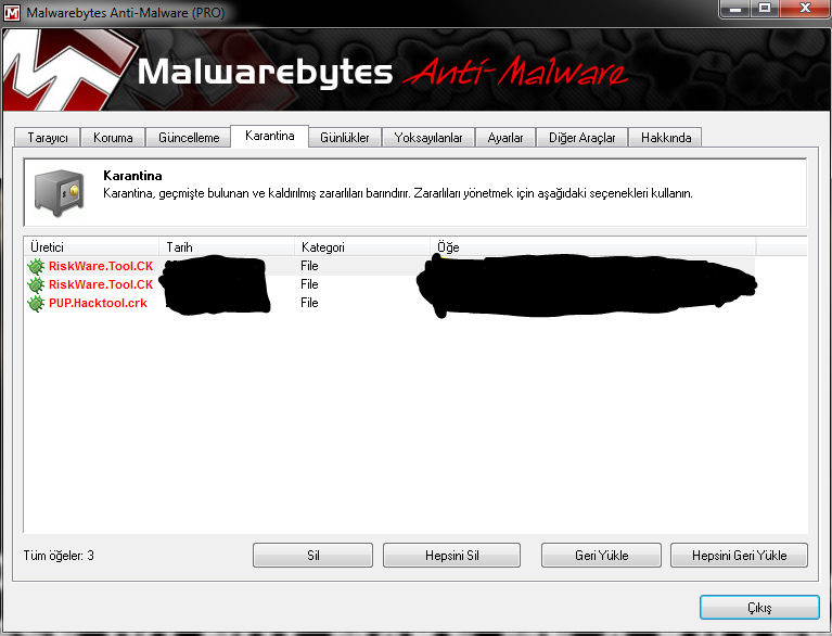 Malwarebytes Anti-Malware Karantina